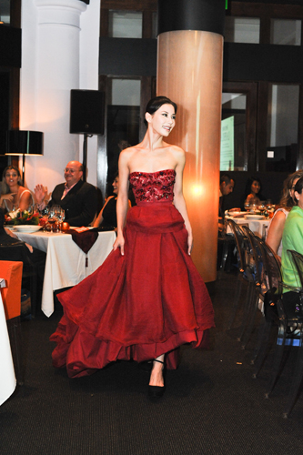 The activities of the evening included a ‘live’ auction of donated items such as weekend stays in boutique hotels in The Fort Printers, Sri Lanka & JIA Shanghai, Gio Monaco watches, Loro Piana fabric, suite weekend in Singapore’s Shangri La Hotel, one-of-of a kind gold and white jade earrings by Julinda Chia Morgan, Eye Thermage Treatment, Samsonite luggage, just to name a few. Also a key highlight of the evening was the ‘silent’ auction of a specially designed “Asian Red Bustier and Gown” donated by the Italian fashion house, La Perla.  The gown is made from silk faille, covered in lace and adorned with hundreds of Swarovski crystals, and was worn by well-known model and television celebrity, Denise Keller. During the auction, the 110 guests dined on a 4-course meal, elegantly prepared by and sponsored by il Lido, and wines sponsored by Denise Wines.  Popular TV & radio host, Vernetta Lopez, kindly provided her expertise as an energetic and lively Master of Ceremony for the evening. Also adding to the excitement and fun of the evening, was volunteer auctioneer, Eduard Peter, head of Deutsche Bank Asset Management Asia, who cajoled lively bidding amongst the guests.